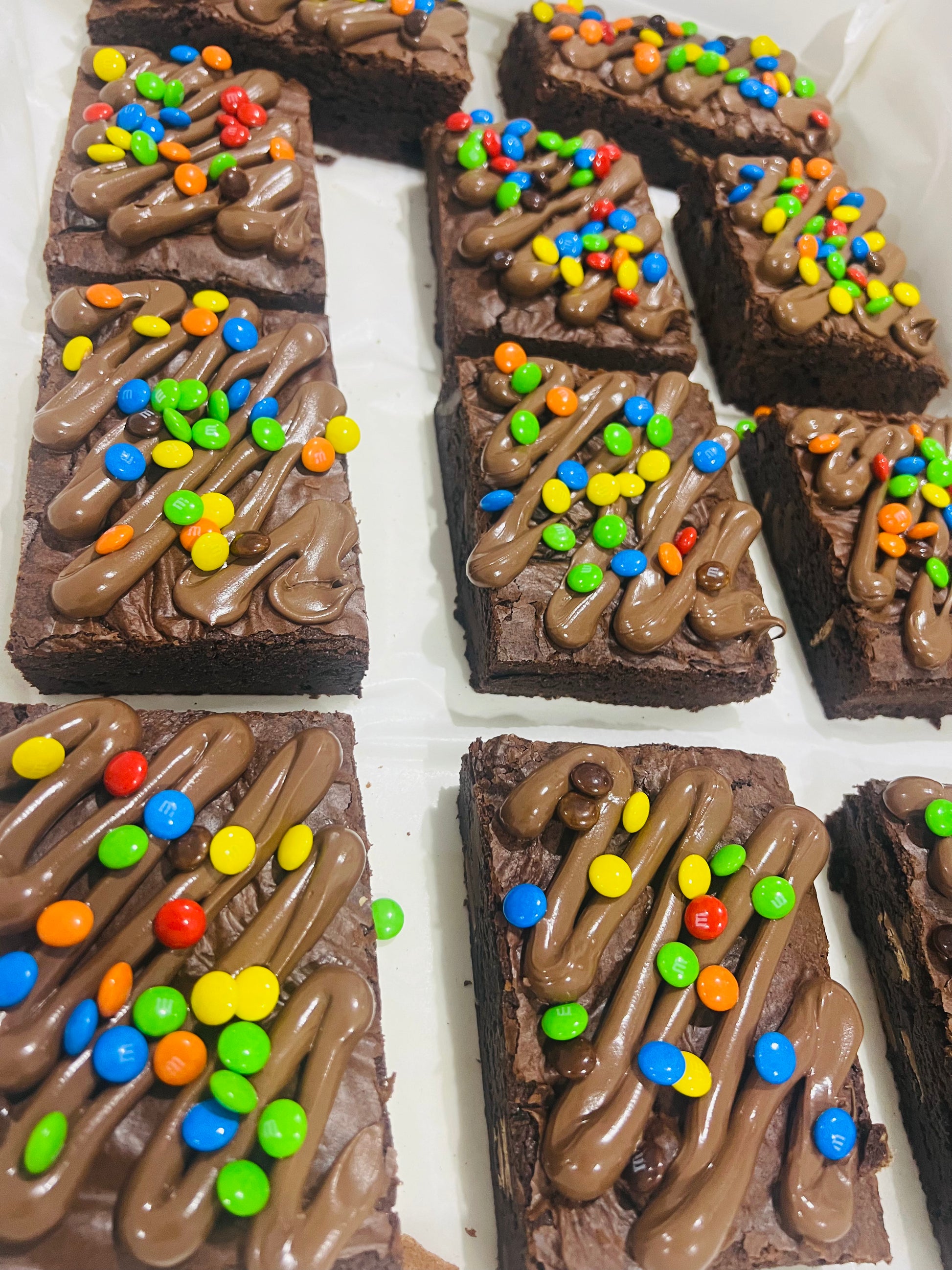 Indulge in the rich and decadent flavor of our Nutella brownie, loaded with colorful bursts of M&M's. Satisfy your cravings with every bite of this delicious and gooey treat. Perfect for any chocolate lover, our brownie is made with high-quality ingredients for a heavenly experience.